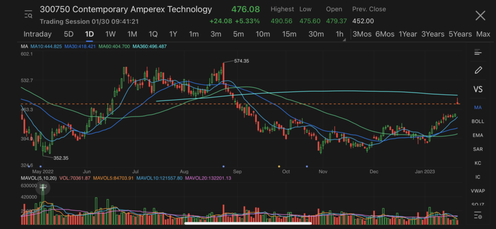 China’s electric vehicle battery giant CATL opened over 6% higher at 479.37 yuan in Shenzhen, hitting the highest in nearly five months, before paring gains to 5.3%.