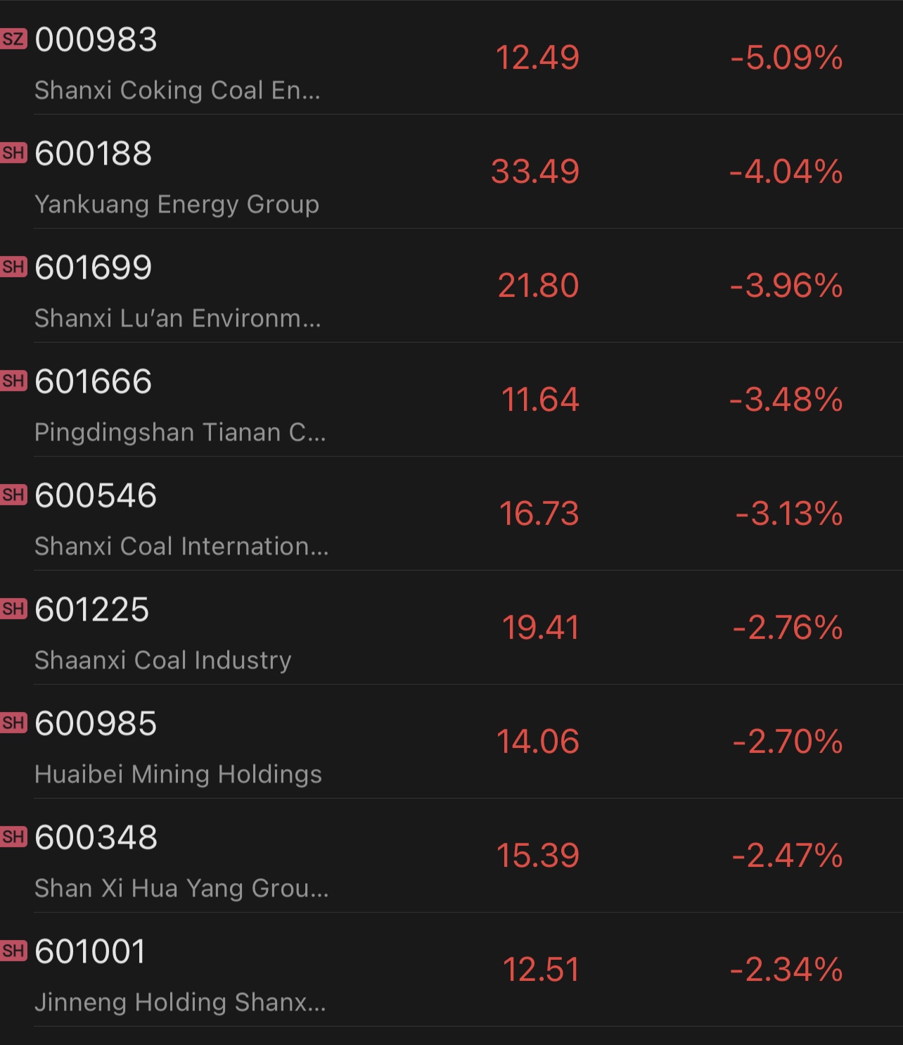 Shares of Chinese coal companies slide across the board in the A-share market, with Shanxi Coking Coal sliding 5.3% as of 10:40 am local time Yankuang Energy down over 4%, Shanxi Lu’an Environmental Energy down 3.9%.Â
